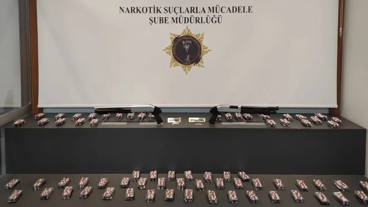 Aramada 3 bin 740 sentetik ecza hapı, 0,20 gram uyuşturucu madde ile 2 pompalı tüfek bulundu.