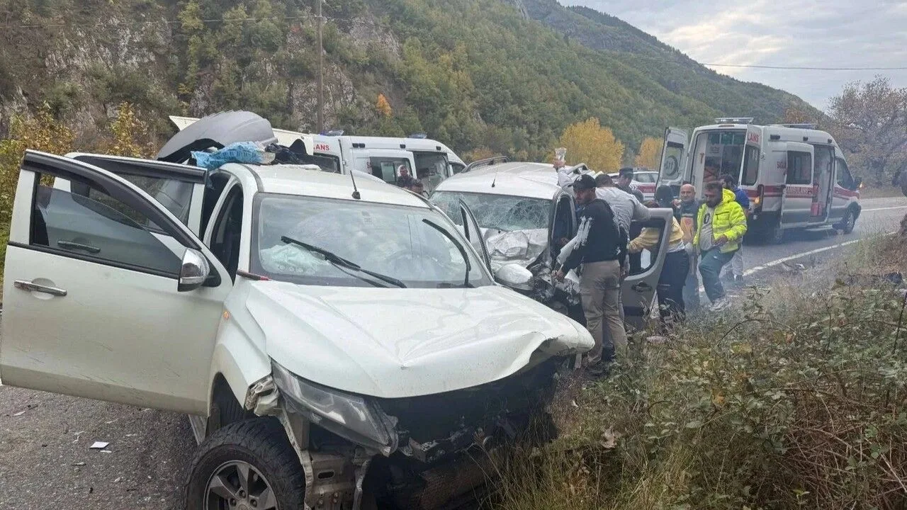 Artvin-Ardahan kara yolunun 53. kilometresinde Ömer Alperen P. (28) yönetimindeki 06 BVZ 230 plakalı kamyonet ile Yunus Emre A. (24) idaresindeki 08 ABU 796 plakalı kamyonet ve Muhammet Y'nin (42) kullandığı 08 ABJ 017 plakalı otomobil çarpıştı.