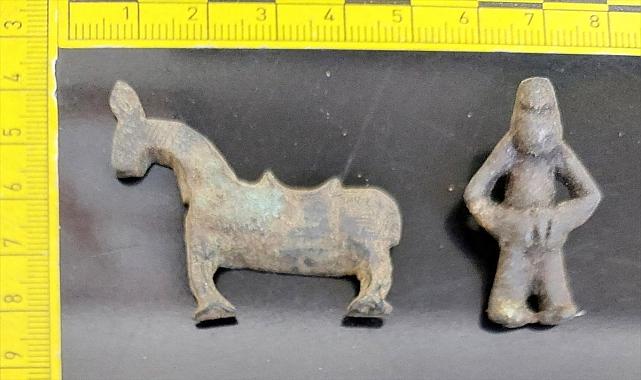 Bayburt'ta Roma ve Bizans dönemine ait olduğu değerlendirilen 91 parça tarihi eser ele geçirildi.Bayburt İl Jandarma Komutanlığı ekipleri, kültür ve tabiat varlıklarının korunması ile kaçakçılığın önlenmesine yönelik çalışmalar kapsamında merkez ve Demirözü ilçesinde sit alanlarında izinsiz kazı ve tarihi eser araştırması yapıldığı bilgisine ulaştı.Bölgede kazı yapan kişilerin belirlenmesi üzerine 4 adrese yapılan operasyonda Roma ve Bizans dönemine ait olduğu değerlendirilen 16 yüzük, 2 küpe, 2 kolye, bilezik, broş, 4 haç figürü, insan figürlü heykelcik, figürlü heykelcik, 10 ok ucu ve 53 süs eşyası türünde metal obje olmak üzere toplam 91 tarihi esere ulaşıldı.Operasyonda 4 zanlı gözaltına alındı.