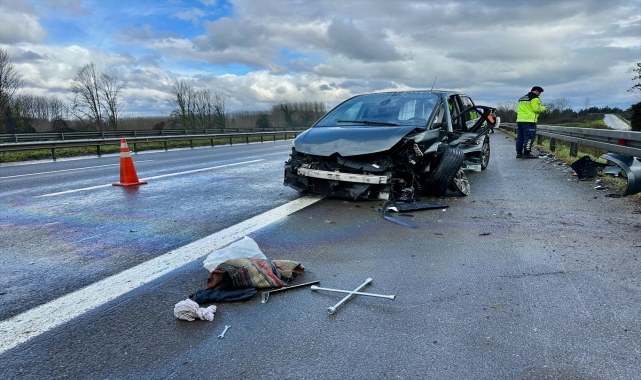 Anadolu Otoyolu'nun Düzce kesiminde otomobil ile cipin çarpıştığı kazada 1 kişi yaralandı.Otoyolun Ankara istikametine seyreden H.Ç. idaresindeki 34 JH 4869 plakalı otomobil, Ozanlar mevkisinde kontrolden çıkarak bariyere çarptı.Otomobile bu sırada aynı istikametten gelen Y.K. yönetimindeki 78 AN 900 plakalı cip çarptı.İhbar üzerine bölgeye jandarma, Karayolları ve sağlık ekipleri sevk edildi.Kazada otomobil sürücüsü H.Ç. yaralandı.Yolun sağ şeridinin yaklaşık 200 metrelik kısmı dubalarla çevrildikten sonra yaralıya müdahale edildi.H.Ç, ambulansla Düzce Üniversitesi Tıp Fakültesi Eğitim Araştırma ve Uygulama Hastanesi’ne kaldırıldı.