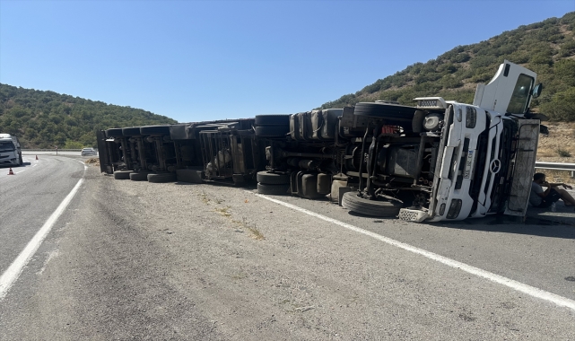 Çorum'un Alaca ilçesinde devrilen tırın sürücüsü yaralandı.