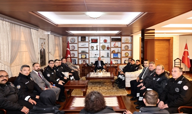 Çorum Valisi Ali Çalgan, özel güvenlik görevlileri ile genel kolluk arasındaki iletişimi güçlendiren KAAN (Genel Kolluk-Özel Güvenlik İş Birliği ve Entegrasyonu) uygulamasını başarıyla kullanan kolluk ve güvenlik personeline başarı ve teşekkür belgeleri verdi.Valilikten yapılan yazılı açıklamaya göre, Çalgan, İçişleri Bakanlığınca yürütülen KAAN uygulamasıyla kentte kamu güvenliğinin korunmasına katkı sağlayan genel kolluk ve özel güvenlik personelini kabul etti.Çalgan, KAAN uygulamasıyla özverili çalışmalarından ötürü genel kolluk ve özel güvenlik personeline teşekkür ederek, başarı ve teşekkür belgesi verdi.Kamu düzeninin korunmasında genel kolluk ile özel güvenlik personeli arasında KAAN uygulaması aracılığıyla örnek iş birliği sergilendiğini belirten Çalgan, "KAAN uygulaması sayesinde genel kolluk ve özel güvenlik arasında etkin iletişim ve güçlü koordinasyon sağlanmakta, asayiş olaylarına en kısa sürede müdahale edilmekte, birçok olay suç meydana gelmeden önlenmekte, olay yerindeki deliller sağlıklı şekilde muhafaza edilerek genel kolluğa teslim edilmektedir. KAAN uygulamasının aktif ve verimli kullanımı kamu güvenliğine büyük katkı sunmaktadır. Bu vesileyle, görevlerini özveriyle yerine getiren tüm personelimize teşekkür ediyor, başarılarının artarak devam etmesini diliyorum." ifadelerini kullandı.Kabule İl Emniyet Müdürü Arif Pehlivan da katıldı.