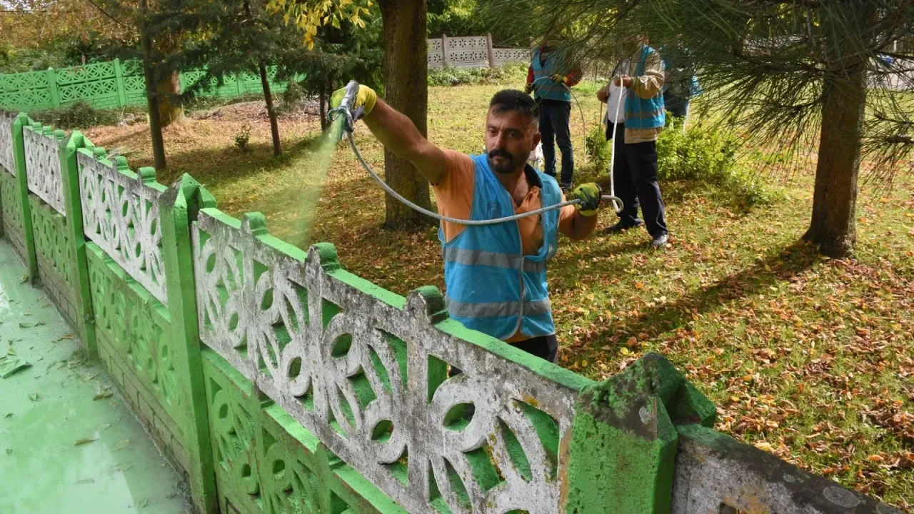 Kürtün İlkokulu ve Ortaokulunda yürütülen projeye katılan Bayrak, diğer yükümlülerle birlikte okulu ve çevresini boyayıp temizliğini yaptı.
