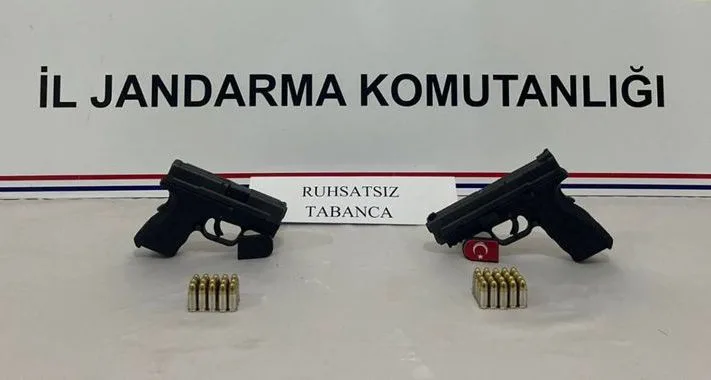 Şüphelilerin üst aramasında 2 ruhsatsız tabanca ve şarjör ile 13 tabanca fişeği ele geçirildi. Haber Merkezi