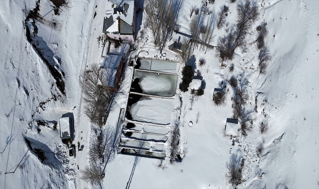 BEŞİR KELLECİ - Bayburt'ta, hava sıcaklığının sıfırın altında 20 dereceye düştüğü 2 bin rakımlı dağ köylerinde kültür alabalığı tesisleri olan üreticiler, en lezzetli balığı yetiştirmek için mücadele veriyor.Kentte etkisini sürdüren kar yağışı ve soğuk hava, alabalık üreticilerini de olumsuz etkiliyor.Üreticiler, bu yıl sıcaklığın zaman zaman sıfırın altında 30 dereceye kadar düşmesi nedeniyle havuzların tamamen buz tutmasından endişeleniyor. Kent merkezine 60 kilometre uzaklıkta, dağların çevrelediği 2 bin rakımlı Yoncalı köyündeki kültür alabalığı üretim tesisine ait havuzlarda da buz kalınlığı 10 santimetreyi buluyor.Sabahın erken saatlerinde tesislere gelen üreticiler, havuzlardaki kar ve buzu küreklerle kırarak temizliyor.Alabalık üreticisi Hasan Koşat, AA muhabirine, yaklaşık 25 yıldır alabalık ürettiklerini ve bu soğuklarda havuzların tamamen donmaması için çalıştıklarını söyledi.Üretim aşamalarında coğrafi ve iklimsel koşullar nedeniyle zorluklar yaşadıklarını dile getiren Koşat, "Kış çok ağır, su soğuk. Dolayısıyla balıkların yetişme süresi uzun. Yaklaşık 30 ayda balıklarımızı yetiştirebiliyoruz. Su sıcaklığı yazın 16 dereceye kadar çıkıyor. Kışın 3 dereceye düşüyor." dedi.Koşat, kışın hava sıcaklığının bölgede genellikle sıfırın altında 20 derece civarında seyrettiğini, dolayısıyla havuzlarda su akışını güçlükle sağladıklarını vurguladı.- "Gece gündüz suyun akışını sağlamaya çalışıyorum"Suyun donmaması ve sürekli akmasının alabalıklar için önemli olduğuna değinen Koşat, "Suyumuz aktığı sürece hiçbir sıkıntımız yok ancak su kesilirse havuz buzlanıyor, buz çökerse balık telef oluyor. Sürekli burada yaşadığım için öyle bir olayla karşılaşmadım. Gece gündüz suyun akışını sağlamaya çalışıyorum." diye konuştu.Koşat, köydeki çetin kış şartlarının 7 ay sürdüğüne, yoğun kar yağışı nedeniyle bu sürenin bu yıl daha da uzayabileceğine işaret etti.- "Sağdığımız balığı yaklaşık 3 yıl sonra porsiyonluk hale getiriyoruz"Balık satışlarını haziran ve eylül ayları arasında yapabildiklerini anlatan Koşat, şöyle devam etti:"Bu dört ay dışında sadece balıklarımızı beslemeye çalışıyoruz. Nisanın ilk haftasında da sağım yapıyoruz. Bu yıl sağdığımız balığı yaklaşık 3 yıl sonra porsiyonluk hale getiriyoruz. Sebebi de havanın soğuk, rakımın yüksek olması. Kış bizim açımızdan zorluklarla geçiyor. Burada her yıl yaklaşık 20 bin balık satıyorum. Bayburt'tan, İspir'den, Rize'den gelenler oluyor. Hem canlı hem de pişmiş olarak satış yapıyoruz."Koşat, iklimsel ve coğrafi şartların balığın lezzetini etkilediğini ifade ederek, "Balığın lezzeti hem dağdan gelen suyun kalitesi hem de balıkların çok az yemlenmesinden dolayı farklı. Kış şartlarının ağır olması balığın daha az yemlenmesine neden oluyor. Bu da lezzet ve kalitesini artırıyor. Yine sudaki oksijenin bol ve soğuk olması, havanın çok sert geçmesi ve kışın uzun sürmesi balığın kalitesini artırıyor." diye konuştu.