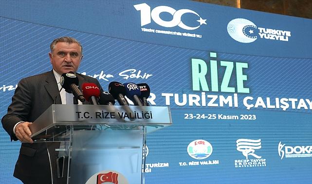 Gençlik ve Spor Bakanı Osman Aşkın Bak, "Spor yatırımlarında ve tesisleşmede adeta devrim niteliğindeki başarımız, ülkemizin birçok prestijli uluslararası spor organizasyonlarına ev sahipliği yapması, Türkiye'nin bir spor ülkesi olduğunu tüm dünyaya göstermiştir." dedi.Bak, Rize'de bir otelde düzenlenen "Rize Spor Turizmi Çalıştayı"nın açılışında yaptığı konuşmada, çalıştayın, Cumhuriyet'in 100. yıl dönümünde Türkiye'nin ve Rize'nin spor markasına katkı sağlayacak çok önemli bir program olduğunu söyledi.Spor turizminin, son yıllarda en hızlı büyüme gösteren turizm çeşitlerinden biri olduğunu belirten Bak, "Sahip olduğu özellikler sayesinde turizm etkinliklerinin çeşitlendirilmesi ve turizm sezonunun uzatılması gibi imkanlar sağlayarak ülke ekonomilerine çok ciddi katkılar sağlayabilmektedir. Hepimizin bildiği üzere, Türkiye aynı anda dört mevsimin yaşandığı, kış sporlarından yaz sporlarına elverişli doğasıyla, üst düzey tesis altyapısıyla adeta bir spor turizmi ülkesidir. Bakanlığımız da spor turizmi alanında çok ciddi çalışmalar yürütmektedir." diye konuştu.Bak, Bakanlığın katkılarıyla 11. Kalkınma Planı'nda spor turizminin ilk kez stratejik alan olarak plana dahil edildiğini vurgulayarak şu değerlendirmede bulundu:"12. Kalkınma Planı'nda da belirtildiği üzere, Türkiye'nin bir spor turizmi destinasyonu olarak cazibesinin artırılması, ülke spor markası imajının güçlendirilmesi, yeni pazarlama ve tanıtım stratejilerinin geliştirilmesi gibi hedeflere ulaşmak için tüm paydaşlarımızla el birliğiyle çalışmalarımızı sürdürüyoruz. Rize'de yaptığımız bu çalışma da bu hedeflerin gerçekleştirilmesine yönelik attığımız güçlü adımlardan bir tanesi. Rize, ormanı, görkemli dağları ve Karadeniz'in huzur veren sesiyle sadece bir şehir değil, keşfedilmeyi bekleyen bir spor turizmi destinasyonudur.""Coğrafi özelliklerinden dolayı şehrimizin büyük bir spor potansiyeli var"Spor turizmini geliştirme çabalarının sürdürülebilir uygulamalara olan bağlılıkla ilerlediğine dikkati çeken Bak, şöyle devam etti:"Sorumlu turizm girişimleri sayesinde gelecek nesillerin de hem spor hem turizm alanında Rize'nin ihtişamından faydalanabilmesini amaçlıyoruz. Rize, doğa sporları ve ekstrem sporlar başta olmak üzere birçok spor branşının yapılması için elverişli koşullara sahip. Coğrafi özelliklerinden dolayı şehrimizin büyük bir spor potansiyeli var. Kalıcı kar süresinin uzun olması kış sporlarına, denizi ve debisi yüksek derelere sahip olması su sporlarına, sınırları içerisinde birçok sıradağların, zirvelerin yer alması ekstrem sporların yapılmasına imkan veriyor. Yine Karadeniz bölgesindeki komşu ülkelere, Türk devletlerine coğrafi yakınlığımız şehrimize ayrıca bir önem ve zenginlik katıyor. Her yıl gelişerek, artarak devam eden ulaştırma, konaklama ve spor tesisi yatırımlarımızla Rize'nin önemli bir destinasyon alanı, önemli bir cazibe merkezi ve spor turizminde marka şehirleri arasında yerini almasında hiçbir engel yok."Bak, Rize-Artvin Havalimanı'nın çok önemli butik bir havalimanı olduğunu, bu yıl hedefin 1 milyon yolcuya ulaşmak olduğunu ifade etti.Son 22 yılda 81 ilin son teknolojiyle yapılmış modern tesislerle donatıldığının altını çizen Osman Aşkın Bak köylere, kasabalara varıncaya dek hiçbir ayırım gözetmeksizin tesislerin halkla buluşturulduğunu söyledi.Bak, spor yatırımlarına işaret ederek "Spor yatırımlarında ve tesisleşmede adeta devrim niteliğindeki başarımız, ülkemizin birçok prestijli uluslararası spor organizasyonlarına ev sahipliği yapması, Türkiye'nin bir spor ülkesi olduğunu tüm dünyaya göstermiştir. İslami Dayanışma Oyunları'ndan Dünya Göçebe Oyunları'na, Avrupa Atletizm Şampiyonası'ndan Şampiyonlar Ligi finaline kadar pek çok küresel organizasyona ev sahipliği yaptık. Bugün uluslararası spor organizasyonlarını talep eden değil, talep edilen bir ülke haline geldiğimizi rahatlıkla söyleyebilirim." dedi.Komisyonlarda alınan kararların, her bir görüşün ve önerinin çok önemli, değerli olduğunu dile getiren Bak, şunları kaydetti:"Bundan sonraki süreçte de çaba ortaya koyan tüm arkadaşlarımızın, tüm paydaşlarımızın, sivil toplum, özel sektör, medyamızın tekliflerine, gayretlerine açık olduğumuzu, bakanlık olarak tüm birimlerimizle gelişime, dönüşüme açık olduğumuzu ifade etmek istiyorum. Her birinizi aktif olarak katılmaya, fikir alışverişinde bulunmaya ve bölgemizdeki spor turizminin büyümesine katkıda bulunmaya davet ediyorum. Rize'de spor turizminin tüm potansiyelini ortaya çıkarmak için çalışırken birlik ruhunu benimseyelim. Bu çalıştay, Rize'de hem macera hem de kültürel zenginlik arayan spor meraklıları için geleceğe doğru atılmış bir adım olsun.""Ülkemizin dünya spor turizminden alacağı çok büyük pay var"Türkiye'nin uluslararası alanda herkesi sevindiren başarılar elde ettiğini anlatan Bak, "A Milli Futbol Takımı'mız grubunda birinci olarak Almanya'da yapılacak olan 2024 Avrupa Futbol Şampiyonası'na katılacak. Orada kendi evimizde oynuyormuş gibi mücadele edeceğiz. 2 Aralık'ta kuralar çekilecek. Buradan tekrar milli takımımızı tebrik ediyoruz." diye konuştu.Bak, A Milli Kadın Voleybol Takımı'nın da Avrupa şampiyonu olduğunu hatırlatarak şöyle devam etti:"Dünya turnuvalarında da başarılar kazanıyor. Türkiye, yapılan spor tesisleri, altyapı yatırımları, ortaya konulan pek çok organizasyonlarla herkesin gelmek istediği, organizasyona katılmak istediği, ulaşımın kolay olduğu bir destinasyon. Malumunuz İstanbul Havalimanı bir daire çizdiğinizde yaklaşık 3-4 saatlik mesafe içerisinde. Pek çok ülkenin rahatlıkla ulaşabilec