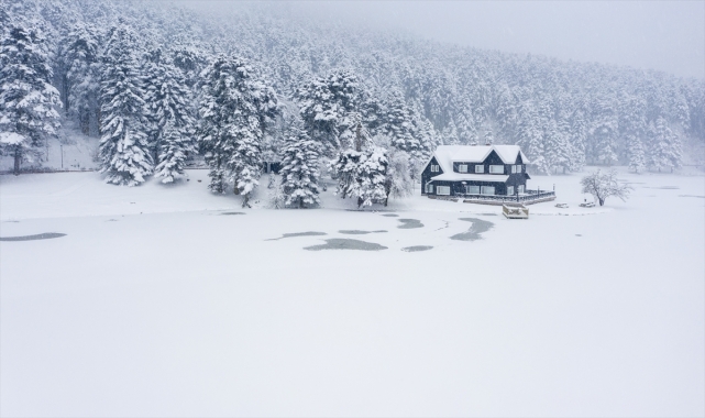 Bolu kent merkezine 13 kilometre uzaklıkta bulunan Gölcük'te kar yağışı etkili oluyor.Yağışın ardından gölün çevresi ve tabiat parkının etrafındaki dağlarda kar kalınlığı 30 santimetreye ulaştı.Gölcük'e gelenler, güzel manzara eşliğinde yürüyüş yaptı, fotoğraf çektirdi.Tabiat parkındaki gölün donmuş yüzeyi ve çevresinde oluşan kar manzarası, dronla görüntülendi.Karabük'teki Keltepe Kayak Merkezi'nde de kar yağışı etkisini gösteriyor.Gençlik ve Spor Bakanlığınca 5 yıl önce hizmete alınan 2 bin rakımlı kayak merkezinde yağışın ardından kar kalınlığı 7 santimetre ölçüldü.Merkezde hava sıcaklığı ise en yüksek sıfırın altında 7, en düşük sıfırın altında 15 derece olarak kaydedildi.Öte yandan Karabük-Bartın kara yolunun 1030 rakımlı Ahmetusta Geçidi, Safranbolu Sarıçiçek Yaylası, Karadeniz illerini İstanbul'a bağlayan D-100 kara yolu ve ilçelerin yüksek kesimlerinde de kar görüldü.