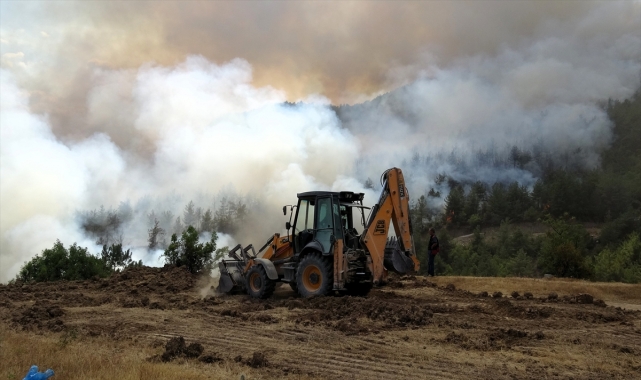 Karabük'te ormanlık alanda çıkan ve 5 Ağustos'ta kontrol altına alındıktan sonra yeniden başlayan yangın söndürülmeye çalışılıyor.