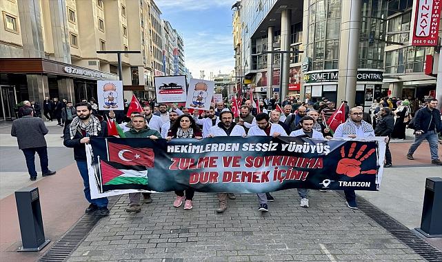 Trabzon'da görev yapan doktor ve sağlık çalışanları, terörü ve İsrail'in Gazze'ye yönelik saldırılarını protesto için sessiz yürüyüş düzenledi.Türk ve Filistin bayrakları ile İsrail aleyhine çeşitli yazıların yer aldığı dövizleri taşıyan sağlık çalışanları, Kahramanmaraş Caddesi'nden Atatürk Alanı'na yürüdü.Grup adına açıklama yapan Dr. Yasin Dilek, hekim ve sağlık çalışanları olarak terör, soykırım ve işgale karşı 7'nci haftada 40 ilde tek yürek olarak yürüyüş gerçekleştirdiklerini söyledi.Gazze'de katliamların hız kesmeden devam ettiğini belirten Dilek, "Maalesef geçtiğimiz hafta siyonizmin ve ABD'nin ülkemizdeki maşaları olan terör örgütleri alçak saldırıları ile 12 askerimizi şehit ettiler. Öfkemize öfke, acımıza acı eklendi. Bu hain saldırılar, siyonist işgalcilerin uzun vadedeki emellerinin Anadolu toprakları olduğunu bir kere daha hatırlattı ve Kudüs davasının yalnızca Filistinlilerin değil, bütün Müslümanların derdi olması gerektiğini bir kez daha ispat etti." diye konuştu.Dilek, İsrail'in 7 Ekim'den beri onlarca doktoru tutukladığını, onlarcasının da nerede olduğunun bilinmediğini vurgulayarak, şunları kaydetti:"Gazze şehrinin ana hastanesi olan Şifa Hastanesi Başhekimi Muhammed Ebu Salmia 22 Kasım'dan bu yana İsrail tarafından tutuklu bulunuyor. Toplam sayısı 54 olan pek çok kıdemli doktor, neredeyse 1 aydır hiçbir suçlama olmaksızın İsrail tarafından gözaltında tutulmaya devam ediliyor ve kimse onların nerede olduğunu bilmiyor."