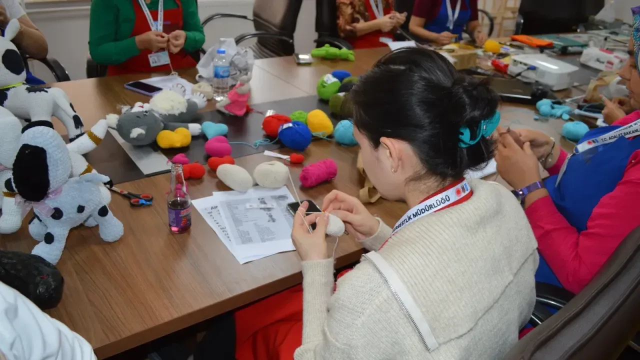 Denetimli Serbestlik Müdürlüğünün, Gençlik ve Spor İl Müdürlüğünce kurulan atölyede kursiyerler için amigurumi tekniğiyle oyuncak yapımı eğitimine başlandı.
