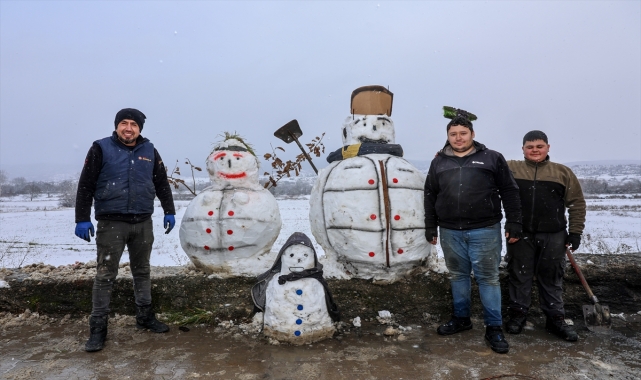 Kastamonu'nun Taşköprü ilçesinde etkili olan kar yağışının ardından sanayi esnafı kardan adam yapıp kartopu oynadı.Taşköprü Sanayi Sitesi'nde ustalar ve çıraklar, kar yağışını eğlenceye dönüştürdü. Büyük bir kar topu oluşturan esnaf, kardan adamın gövdesini taşımak için iş makinesinden faydalandı. Tesadüfen sanayi sitesinden iş makinesiyle geçerken eğlenceye dahil olan Efe Can İyisan, AA muhabirine yaptığı açıklamada, "İş makinesiyle buradan geçiyordum. Esnafın karla eğlendiğini görünce ben de katıldım. Hep birlikte kartopu oynadık ve kardan adam yaptık. Büyük kar topunu da iş makinesiyle tarladan çıkararak kaldırıma koyduk. Ortaya sanayi esnafımızın kardan adamı çıktı." dedi.Elektrik ustası Behçet Demir ise kar yağışını fırsata çevirdiklerini belirterek "Çıraklarımızla birlikte yaptığımız kardan adamın büyük gövdesini taşımak için Efe Can arkadaşımızın kullandığı iş makinesinden yardım aldık. Bugün biraz çocukluğumuzu yaşadık. İşlerin de nispeten durgun olmasını eğlenceye çevirdik.” ifadelerini kullandı.Sanayi sitesinde kardan adamın yanı sıra kardan kadın ve kardan çocuk da yaptıklarını dile getiren Demir, kar yağışının artması halinde tüm sanayi esnafı olarak kartopu oynayacaklarını söyledi.