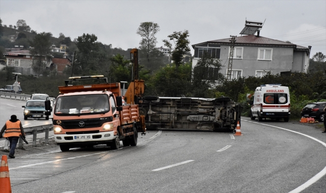Ordu'nun Altınordu ilçesinde devrilen hasta nakil aracının sürücüsü yaralandı.Alınan bilgiye göre, G.Y. (46) yönetimindeki 52 RC 860 plakalı hasta nakil aracı, Dedeli Mahallesi'nde yağış nedeniyle kayganlaşan yolda refüje çarparak devrildi.İhbar üzerine kaza yerine jandarma, itfaiye ve 112 Acil Sağlık ekipleri sevk edildi.Kazada yaralanan sürücü G.Y, Ordu Devlet Hastanesi'nde tedavi altına alındı.Kaza sonrası bölgedeki trafik akışı, bir süre kontrollü sağlandı.