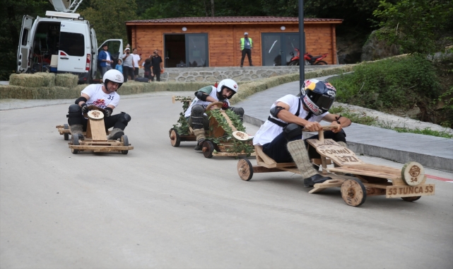 Rize'nin Ardeşen ilçesinde "15. Geleneksel Red Bull Formulaz Tahta Araba Yarışları" gerçekleştirildi.Ardeşen ilçesine bağlı Tunca beldesinde Formulaz Derneği ve Red Bull tarafından Formula 1 yarışlarına atıfta bulunularak, "Formula giderse Formulaz gelir" sloganıyla gerçekleştirilen şenlik, kadınlar ve erkekler olmak üzere iki kategoride düzenlendi.Yarışların startı, kırbaç şeklindeki kalın ipin yere vurulduğunda patlama sesi çıkarmasıyla bilinen geleneksel yöntemle verildi.Kadınlarda 15, erkeklerde ise 45 kişinin yarıştığı organizasyonda, tahta arabaların yarışa uygunluğunun kontrolünün ardından gruplar 1000 metrelik parkurda kıyasıya mücadele etti.Olası kazalara karşı pistin tehlikeli bölümlerine saman balyaları konuldu, yarışmacılar lastik ayakkabı, kıl çorap, kask, kolluk ve dizlik taktı.Yarışların yapıldığı parkurun kenarındaki "dikkat tahta araç çıkabilir", "uçuruma düşmek yasaktır", "start 153 metre geride", "en keskin viraj 53 metre geride" yazılı tabelalar dikkat çekti.Sürücülerin zaman zaman tehlikeli anlar yaşadığı yarışlarda, bazı araçların tekerleğinin kırıldığı, bazı yarışmacıların ise ellerine aldıkları arabalarla koşarak parkuru tamamlamaya çalıştıkları görüldü.Şenlikte, akrobasi sporcusu Birkan Polat da motosikletiyle gösteri sundu.Formulaz Derneği Başkanı Murat Gül, AA muhabirine, unutulmaya yüz tutmuş değerleri gün yüzüne çıkarmaya çalıştıklarını ifade ederek, "Bu yıl yeni pistte tahta araba yarışları yapıyoruz. Yeni pistimiz yüksek güvenlikli. Adrenali yüksek ve keskin virajları var." dedi.Gül, yarışmanın iki grup halinde yapıldığına değinerek, "Yarışmaya 45 erkek yarışmacı ve 15 kadın yarışmacı katıldı. Erkekler 1000 metrede kadınlar ise 600 metrede yarışıyor. Bu yıl çok ciddi bir katılım oldu. İlerleyen yıllarda bunu daha da büyütürüz." diye konuştu.Yarışa katılan 69 yaşındaki Veli Bakır ise 10 yıldır yarışlara katıldığına işaret ederek, "Ben heyecanlanmıyorum beni izleyenler heyecanlanıyor. Ben kazanmak için yarışmıyorum. Sağ salim aşağıya ineyim bana yeter. Herhangi bir iddiam yok, adrenalin ve heyecan oluyor." ifadelerini kullandı.Yarışlara 6 yıldır katılan Arif Sarı da heyecanlı bir organizasyon olduğunu belirterek, dikkatli olanların yarışı kazanacağını söyledi.Etkinliği, Rize Belediye Başkanı Rahmi Metin, DOKAP Başkanı Hakan Gültekin, AK Parti Rize Milletvekili Harun Mertoğlu, Ardeşen Kaymakamı Ferhat Altay, Ardeşen Belediye Başkanı Enver Atagün, Tunca Belediye Başkanı Ramazan Topçu ve çok sayıda vatandaş izledi.