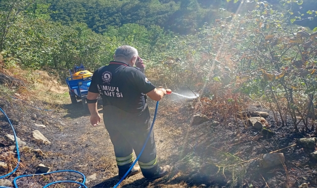 Samsun'un Salıpazarı ilçesinde fındık bahçesinde çıkan yangın, söndürüldü.