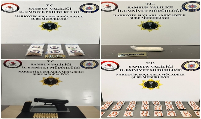 Samsun'un İlkadım ve Canik ilçelerinde düzenlenen operasyonda çeşitli suçlardan aranan 8 kişi uyuşturucuyla yakalandı.İl Emniyet Müdürlüğü Narkotik Suçlarla Mücadele Şubesi ekiplerince, aranan kişiler ile uyuşturucu madde ticareti yapan sokak satıcılarına yönelik çalışma yürütüldü.İlkadım ve Canik ilçelerinde belirlenen adreslere operasyon düzenleyen ekipler, yaptıkları aramalarda, 272 gram sentetik uyuşturucu, 212 sentetik ecza hapı, 4 uyuşturucu kullanma aparatı, 2 ruhsatsız tabanca ile 64 tabanca fişeği ele geçirdi.Operasyonda, aralarında "uyuşturucu madde ticareti yapmak" suçundan kesinleşmiş 4'er yıl hapis cezası olan 2 hükümlünün de bulunduğu çeşitli suçlardan aranan 8 kişi yakalandı.Gözaltına alınan zanlılar, işlemleri için emniyete götürüldü.