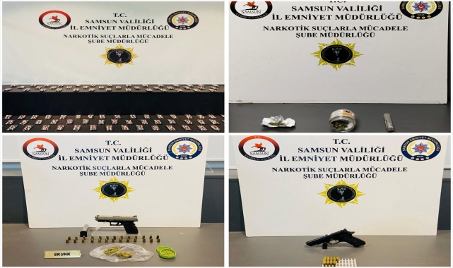 Samsun'da düzenlenen uyuşturucu operasyonunda 5 şüpheli gözaltına alındı.İl Emniyet Müdürlüğü Narkotik Suçlarla Mücadele Şubesi ekiplerince, İlkadım, Atakum ve Çarşamba ilçelerinde belirlenen adreslere eş zamanlı operasyon düzenlendi.Adreslerde yapılan aramalarda, 2 bin 196 sentetik ecza, 11,50 gram esrar, 7,50 gram sentetik uyuşturucu, 2 ruhsatsız tabanca ile 44 fişek ele geçirildi.Operasyonda gözaltına alınan 5 şüpheli işlemleri için emniyete götürüldü.