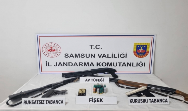 İkamette yapılan aramada, ruhsatsız tabanca, kurusıkı tabanca, 3 av tüfeği, 42 tabanca fişeği ve 24 av tüfeği kapsülü ele geçirildi.Gözaltına alınan zanlı jandarmaya götürüldü.