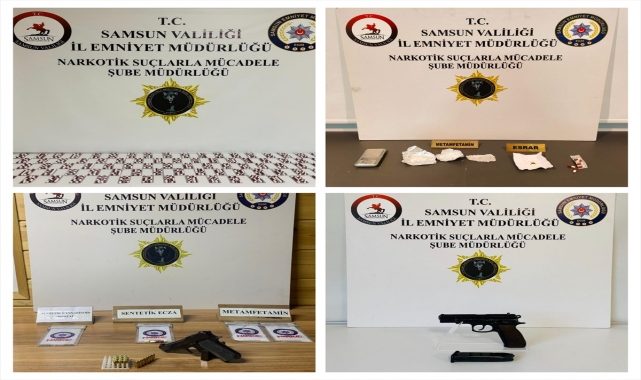 Samsun'da düzenlenen uyuşturucu operasyonunda 5 şüpheli gözaltına alındı. İl Emniyet Müdürlüğü Narkotik Suçlarla Mücadele Şube Müdürlüğü ekiplerince uyuşturucu ticareti ve kullanımının önlenmesine yönelik İlkadım, Tekkeköy ve Havza ilçelerinde eş zamanlı operasyon düzenlendi.Belirlenen adreslerde yapılan aramada, 1296 uyuşturucu hap, 14,54 gram sentetik uyuşturucu, 5,62 gram esrar, hassas terazi, uyuşturucu madde kullanma aparatı, 2 ruhsatsız tabanca ile 19 tabanca fişeği ele geçirildi.Operasyonda 4'ü farklı suçlardan da aranan 5 şüpheli gözaltına alındı.