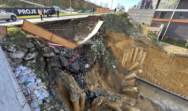 Trafik ekipleri yolu trafiğe kapatarak güvenlik önlemi aldı.Yolda oluşan çökme nedeniyle inşaatın temeline doğru yaklaşık 10 metrelik toprak kayması oluştu.