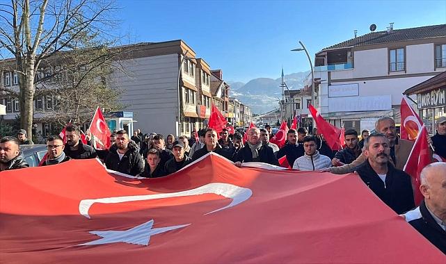 Düzce'de teröre tepki yürüyüşü yapılırken, şehitler için dua edildi.Aziziye Mahallesi'nde bir araya gelen gençler, ellerindeki Türk bayraklarıyla yaklaşık 5 kilometre Anıtpark Meydanı'na kadar yürüdü.Yürüyüş sırasında çeşitli sloganlar atan gençler, Irak'ın kuzeyindeki Pençe-Kilit Harekatı bölgesindeki üs bölgesine sızmaya çalışan teröristlerle çıkan çatışmada şehit olan 9 askerin ismini okuyarak "Burada" diye seslendi.Program, saygı duruşunda bulunulması ve İstiklal Marşı'nın okunmasının ardından sona erdi.Gölyaka ilçesinde de teröre tepki yürüyüşü düzenlendi. Cumhuriyet Caddesi boyunca yürüyen katılımcılar, bölücü terör örgütleri aleyhine sloganlar attı.Şehit askerlerin isimlerini tek tek okuyarak dua eden vatandaşlar, saygı duruşunda bulundu, İstiklal Marşı okudu.Öte yandan, Merkez Büyük Camisi'nde şehitler için "Kur'an-ı Kerim Tilaveti ve Dua Programı" gerçekleştirildi.Düzce Valisi Selçuk Aslan'ın da katıldığı programa, vatandaşlar yoğun ilgi gösterdi.