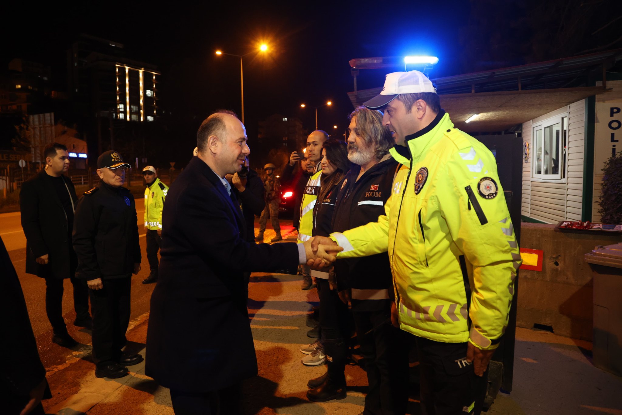 Vali Mehmet Fatih Serdengeçti, 2024 yılbaşı akşamını kentin çeşitli noktalarında görev yapan kamu görevlilerini ziyaret ederek geçirdi.Yılbaşı gecesi, görevi başında bulunan emniyet, jandarma, sağlık, 112 ve GAMER çalışanlarını ziyaret eden Vali Mehmet Fatih Serdengeçti, kentin güvenliği ve sağlık hizmetleri alanındaki önemli birimleri denetleyerek, görevli personellerin yeni yılını kutladı ve hayırlı mesailer diledi.Ziyaretlerine Aksu Mahallesi'nde bulunan Bölge Trafik Uygulama Noktası ile başlayan Vali Serdengeçti, görevli polislere tatlı ikramında bulunarak, Uygulama Noktası Denetleme Defterini imzaladı.Ziyaret ile ilgili olarak, "Valiliğimizin güvenlik ve trafik düzenlemelerinde fedakârca çalışan emniyet mensuplarımıza teşekkür eder, yeni yılın ülkemiz ve şehrimiz için huzur ve güven içinde geçmesini dilerim." şeklinde açıklamada bulundu.Ardından Teyyaredüzü Mahallesi'ndeki 112 Acil Çağrı Merkezi Müdürlüğünü ziyaret eden Vali Serdengeçti “Acil çağrı merkezimizdeki personelimizle bir araya gelerek, gece boyunca yoğun bir tempoda çalışan ekiplerimize teşekkürlerimi ilettim. Çalışanlarımıza yeni yılın sağlık, mutluluk ve başarı getirmesini temenni ediyorum." dedi.