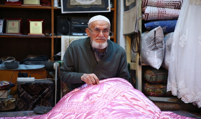 BİLAL KAHYAOĞLU/ELİFNUR ÖNDER - Kastamonu'da yaşayan Şerafettin Küçükbulut, yorgancılık mesleğini ilerleyen yaşına rağmen devam ettiriyor. Kentte 1953 yılında bir yorgancının yanında çalışmaya başlayan 84 yaşındaki Küçükbulut, 1956-58 yıllarında İstanbul Kadiköy'de başka bir yorgancının yanında çalıştı. Daha sonra tekrar memleketine dönen Küçükbulut, aynı yıl kendi dükkanını açtı."Şerafettin dede", iğne ve ipliğiyle 72 yıldır dolgusu pamuk veya yün olup bölgede hala talep gören saten yorganları titizlikle işliyor.Şerafettin Küçükbulut, AA muhabirine yaptığı açıklamada, köyde doğduğunu, çalışmak için kente geldiğini, Kastamonu ve İstanbul'da mesleğin inceliklerini öğrenerek üç çocuk büyüttüğünü anlattı.Yaklaşık elli yıldır aynı dükkanda çalıştığını belirten Küçükbulut, şöyle devam etti:"Yorgancı hocalarımın biri Trabzonlu, biri Çatalzeytinliydi. Kalfa olarak Trabzonlu yorgancının yanına gittim. Onun dükkanında yorgan dikmeye başladım. Bana yorgan başına para ödüyordu. Daha sonra 1956'da İstanbul'a gittim, Kadıköy'de 2 yıl çalıştım. Daha sonra bir bayramda köye geldim. 'Ben İstanbul'da dükkan açacağım' dedim. Ailem 'Bizi burada yalnız bırakma, biz sensiz ne yaparız' dediler. Ben de bu sözün üzerine 1958 yılında Kastamonu'da dükkan açtım. Şu anki dükkanıma ise 1977'de taşındım. 1977'den beri aynı dükkanda devam ediyorum."- 72 yılda 22 yorgan ustası yetiştirdiÇalıştığı 72 yıllık sürede 22 yorgan ustası yetiştirdiğini ifade eden Küçükbulut, "Bunlardan ikisi oğlum. Dördünü de çocuk yetiştirme yurdundan aldım. Ytiştirdiğim ustalardan üçü rahmetli oldu. Bu mesleği halihazırda devam ettirmeye çalışıyorum." diye konuştu.Yetiştirdiği ustaların kendisini çok sevdiğini, iyilik yapanın iyilik bulduğunu dile getiren Küçükbulut, müşterilerinin de yaptığı yorganlardan memnun kaldığına işaret ederek şunları kaydetti:"Benim diktiğim yorganlar garantilidir. Benim işim memnun etmektir, diktiğim yorganlara garanti vermektir. Benim diktiğim yorganlar sökülmez, uzun ömürlüdür. Bozulmaz ve ezilmez. Müşterilerim beni sever, ben müşterilerimi severim. Kastamonu, İstanbul ve Ankara'dan müşterilerim var. Bu mesleğe devam ediyorum. Mesleğimi seviyorum, mesleğimi bırakmak istemiyorum."Evlenecek kişilere indirim yaptığını belirten Küçükbulut, eskiden yorganı alana gelinlik hediye ettiğini, yorgan alanlardan bebeği olduğunu öğrendiklerine de yaptığı küçük yorganları hediye ettiğini söyledi.Sağlığının yerinde olduğunu, sağlığı elverdiği sürece de mesleğini sürdüreceğini vurgulayan Küçükbulut, işini severek ve sabırla yapanların, hiçbir zaman sıkıntı çekmeyeceklerini sözlerine ekledi.